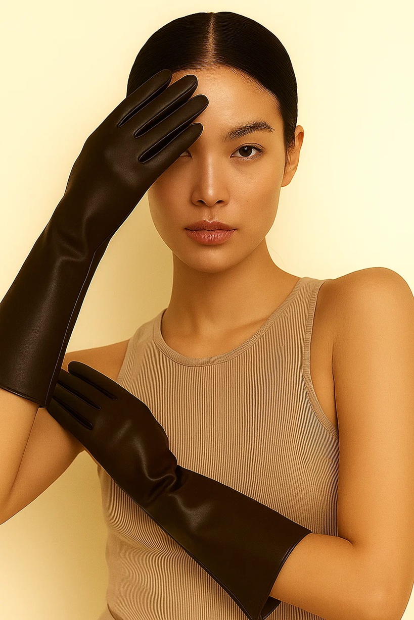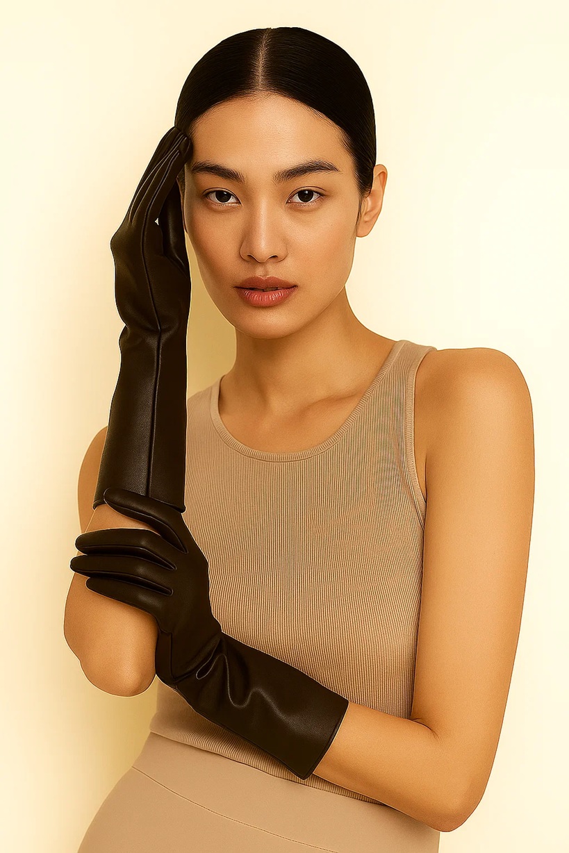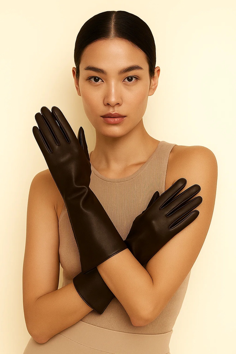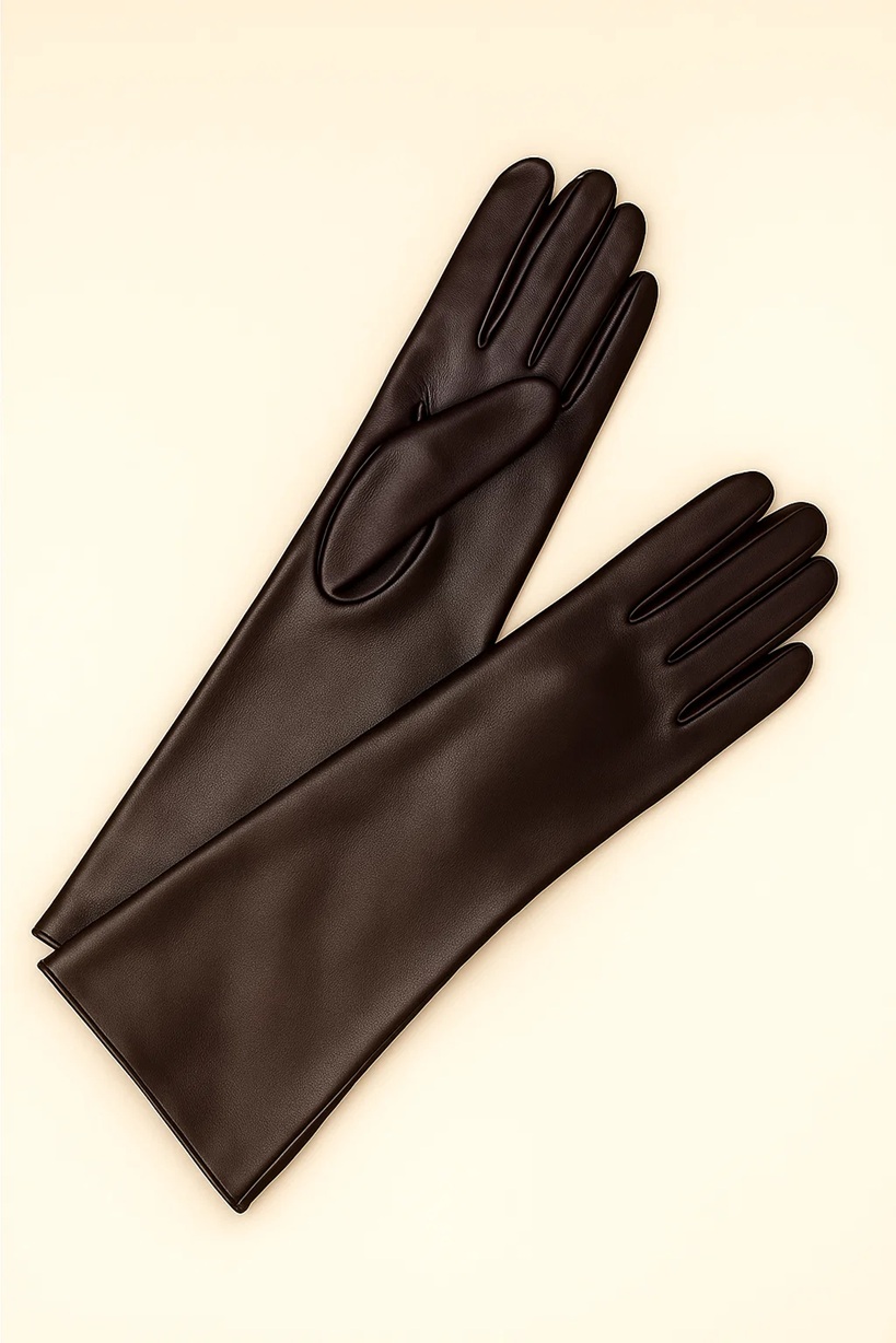 Impeccably refined and effortlessly elegant, these long leather gloves embody the essence of timeless sophistication. Crafted from the finest, buttery-soft lambskin, they glide over the hand with second-skin precision, offering both warmth and grace. The elongated silhouette evokes classic couture styling, while the clean lines and immaculate stitching reveal the mastery of traditional craftsmanship. Designed to complement a tailored coat or evening ensemble, they speak in quiet luxury—an expression of poise, confidence, and enduring refinement.