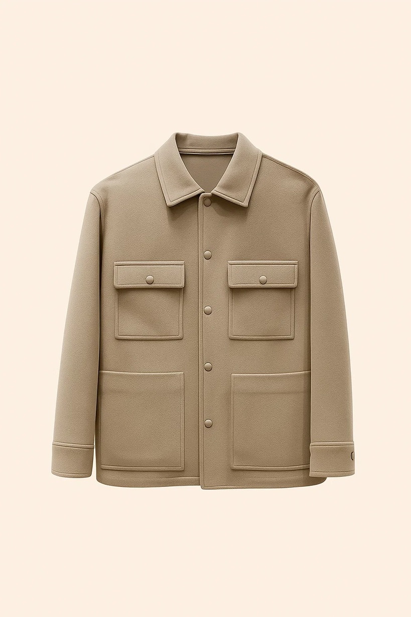 An emblem of understated sophistication, this wool overshirt reflects the perfect balance of structure and ease. Crafted from the finest double-faced wool, it offers remarkable softness, warmth, and durability while maintaining a clean, architectural silhouette. The minimalist design—accented with tonal buttons and precise pocket detailing—speaks to impeccable craftsmanship and modern restraint. Versatile enough to be worn as a light jacket or layered under outerwear, it embodies the essence of quiet luxury: timeless, effortless, and beautifully made.